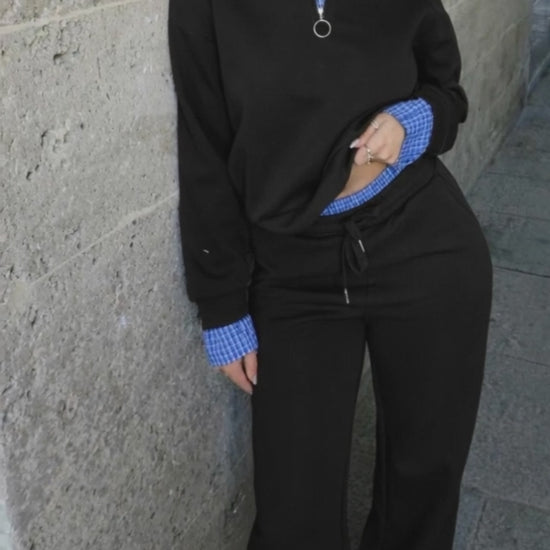 Ontdek de Quarter Zip Set - de perfecte combinatie van sportieve stijl en ultiem comfort. Deze trendy set bestaat uit een quarter zip sweater en bijpassende broek, ideaal voor zowel een actieve dag als relaxte momenten.